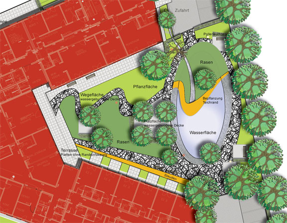 Städtebaus entsprechend, wurde eine ökologische Gestaltung