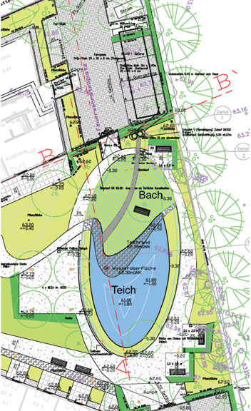 50.000 Liter Zisternenanlage und eines großen Teiches